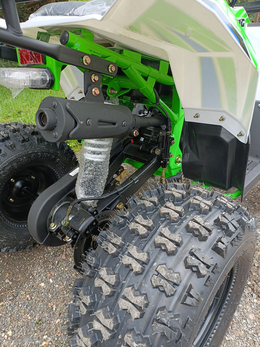 - Moyeux de roue avant et arrière en 4 fixations comme sur les quads adultes 200 cc